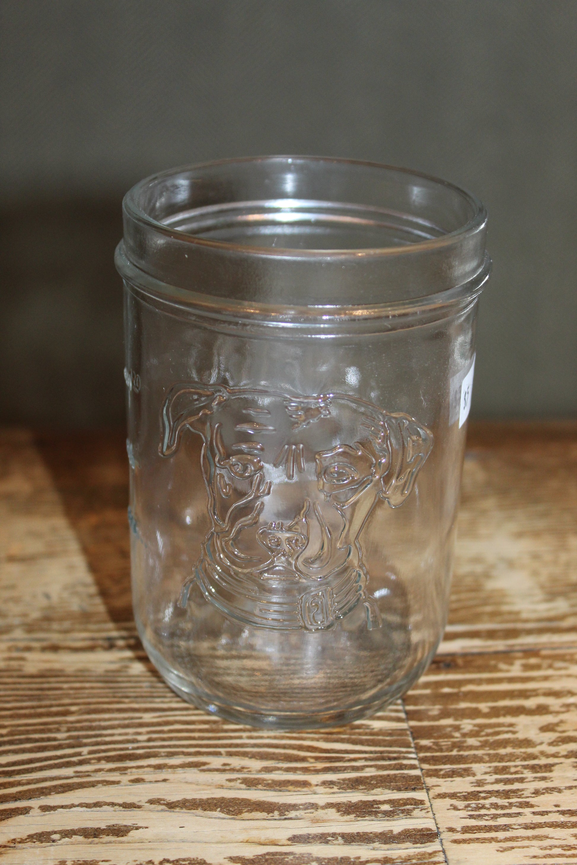Glass mason jar featuring dog, made by Lagunitas Brewing Company. From the Nacho Mama's collection.