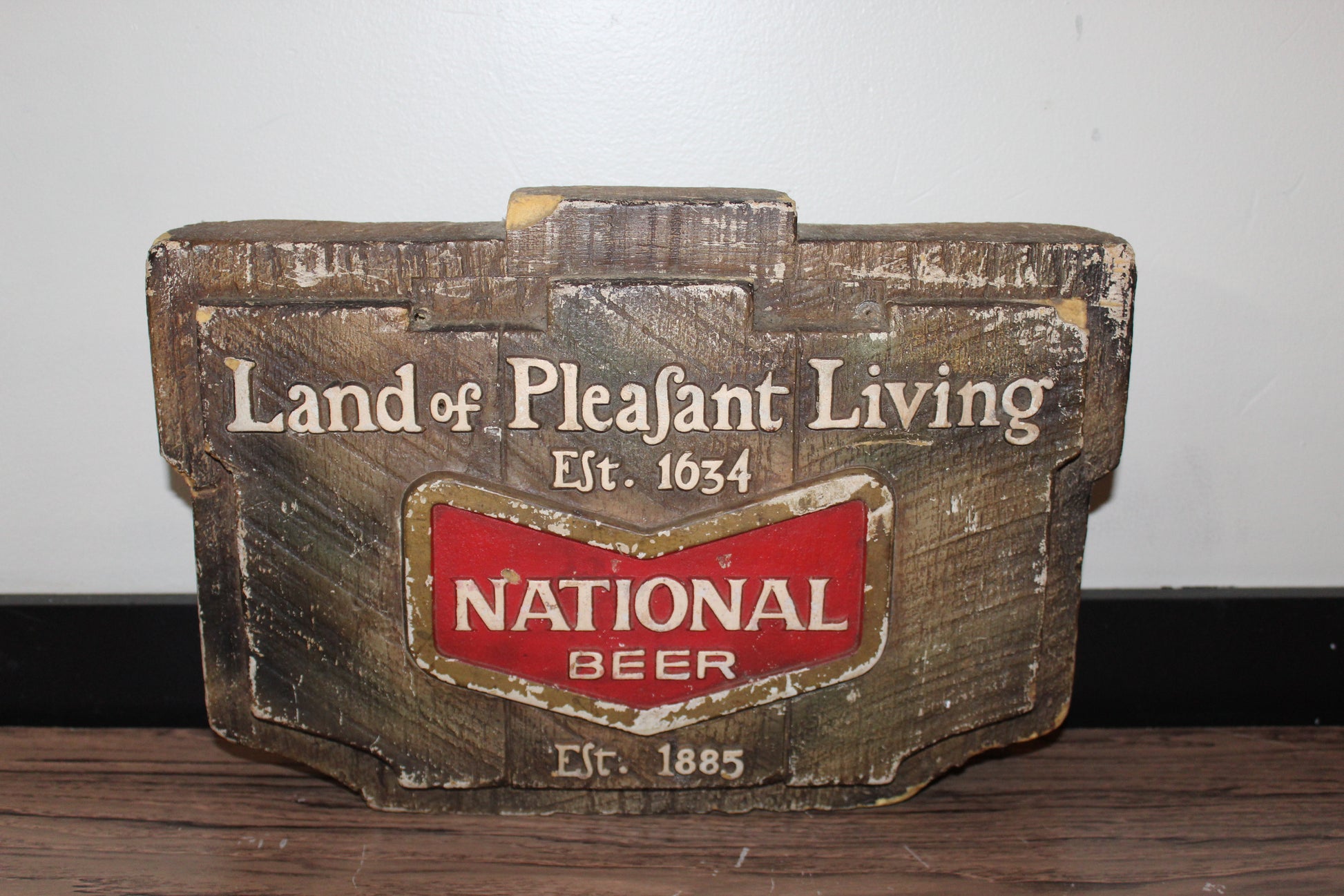 "Land of the pleasant living" National Bohemian chevron logo foam sign. From the Nacho Mama's collection.