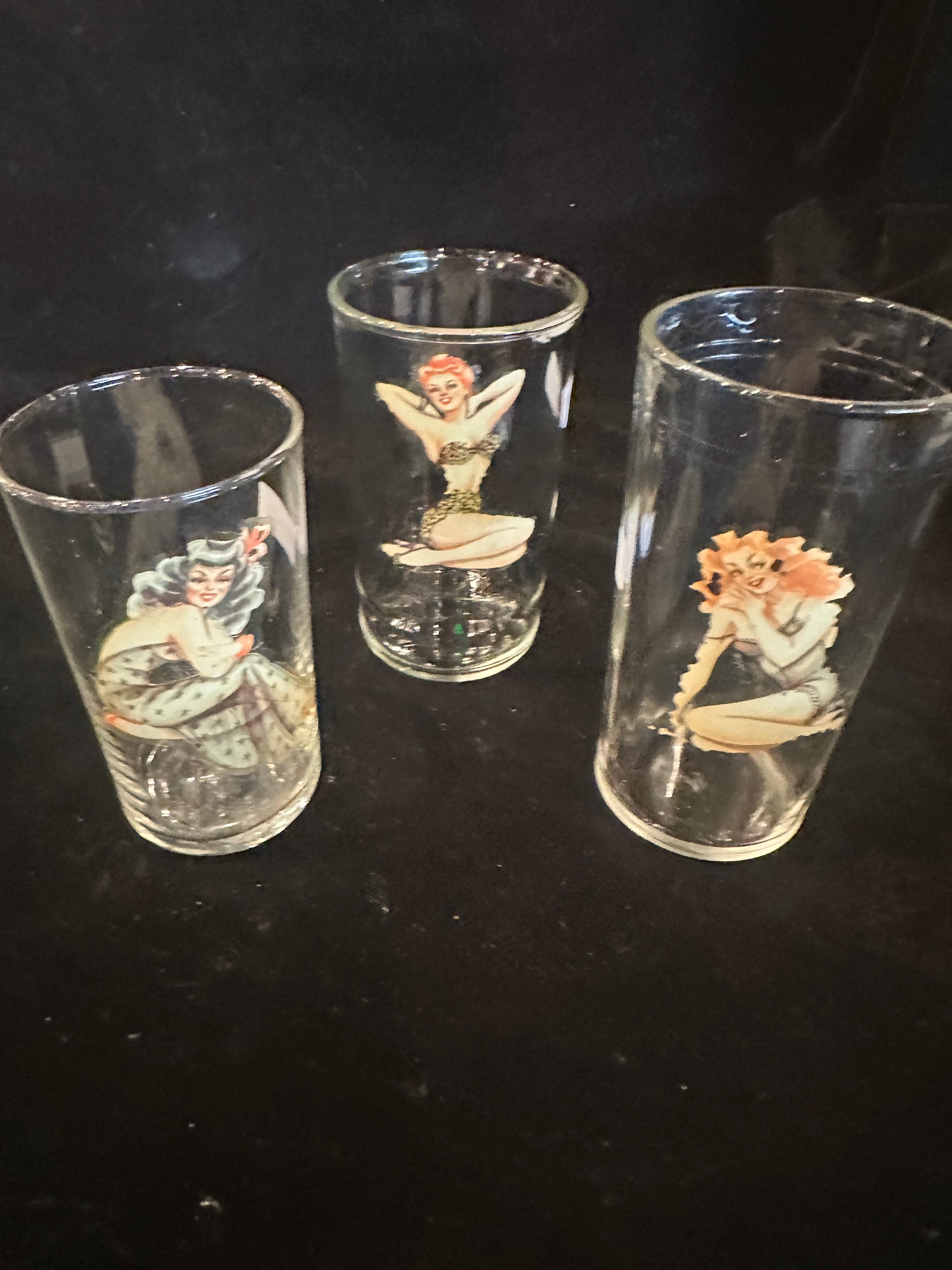 3 Pin-up Juice Style Glasses. Vintage. Comes as a set of 3.